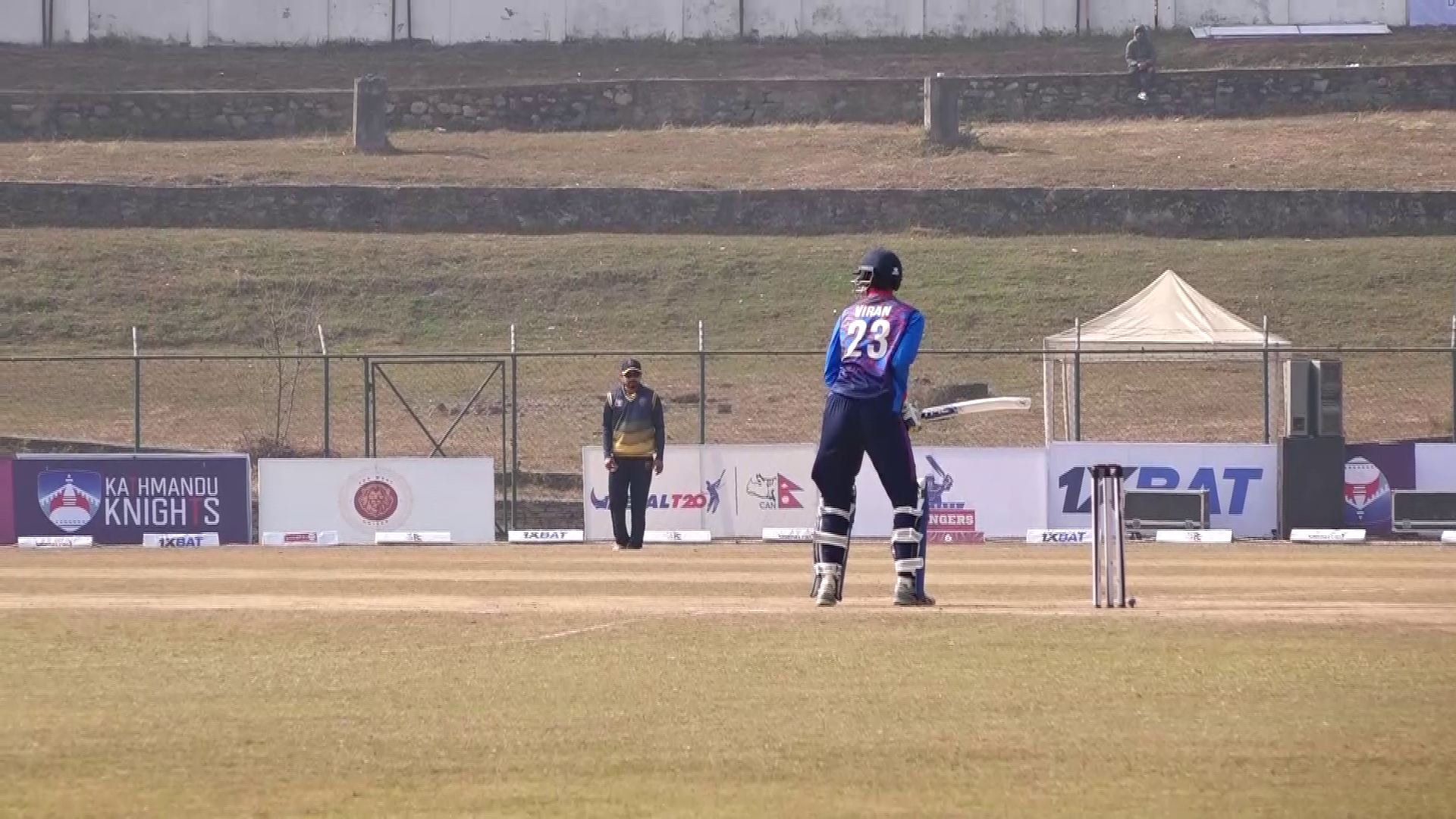त्यसअघि टस जितेर पहिले ब्याटिङ गरेको काठमाडौंले ९ ओभरमा ५ विकेट गुमाएर ९२ रन बनाएको थियो । काठमाडौंका लागि सन्दिप रजालीले अविजित ३२ रन बनाउँदा कमलसिंह ऐरी १४ रनमा अविजित रहे । कप्तान ज्ञानेन्द्र मल्ल १४ रनमा आउट हुँदा एलेक्स ब्लेकले १३ रन बनाए ।