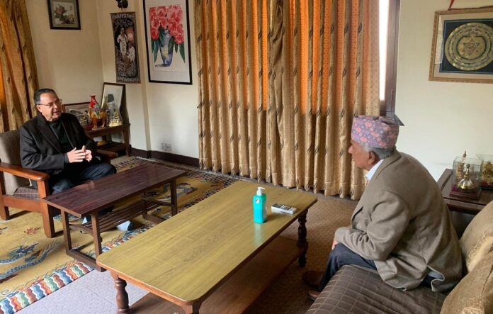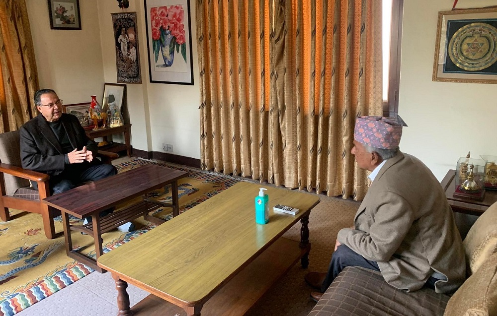 काठमाडौँ । नेपाली कांग्रेसका वरिष्ठ नेतासमेत रहेका राष्ट्रपतिका उम्मेदवार रामचन्द्र पौडेलले नेकपा एकीकृत समाजवादीका सम्मानित नेता झलनाथ खनालसँग भेटवार्ता गरेका छन् ।