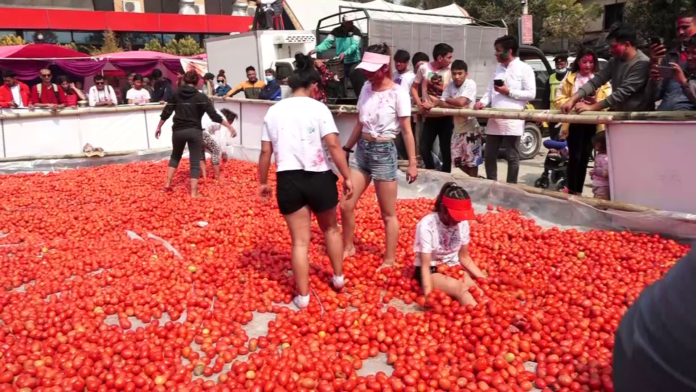 गोलभेडामाथि खेलेर र गोलभेडा प्रहार गरेर काठमाडौंमा ला टोमाटिनो फेस्टिवल आयोजना गरिएको हो ।