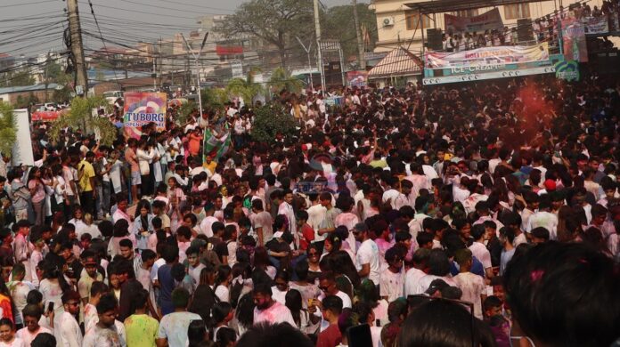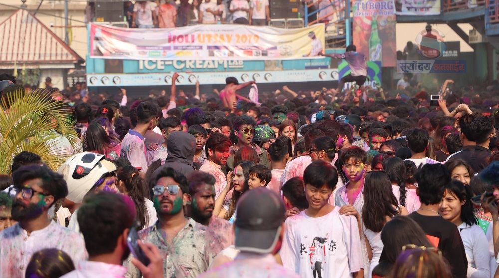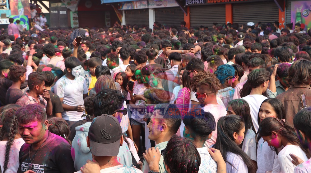 होली खेल्न झापा बिर्तामोडको सिटी सेन्टरमा हजारौंको संख्यामा झापाली उपस्थित भएर रंगिएका छन् ।