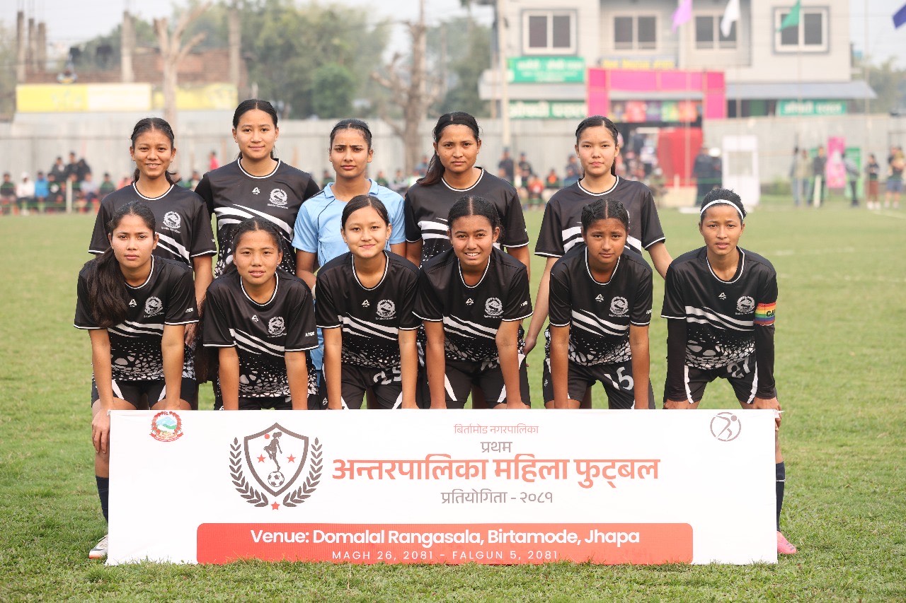 बिर्तामोड, २६ माघ : झापाको बिर्तामोडमा आजदेखि सुरु प्रथम अन्तर पालिकास्तरीय महिला फुटबल प्रतियोगितामा आयोजक बिर्तामोड नगरपालिकाले शानदार सुरुवात गरेको छ ।