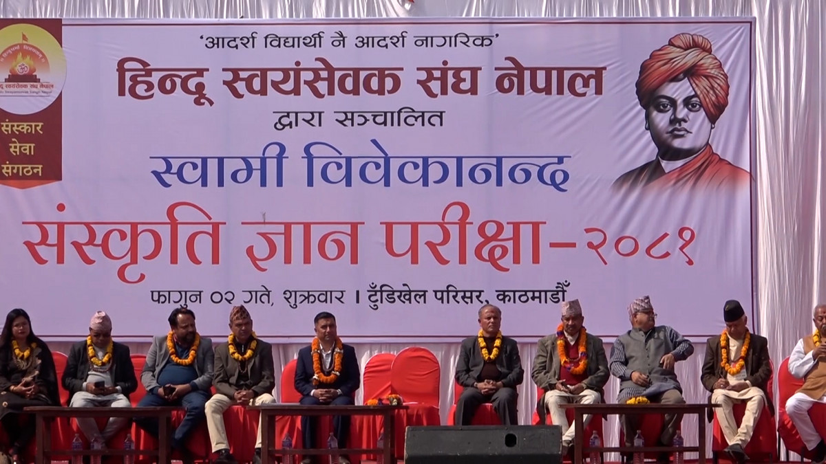 शुक्रवार काठमाडौंको टुँडिखेलमा संघले स्वामी विवेकानन्द संस्कृति ज्ञान परीक्षा सञ्चालन गरेको हो । संघले परीक्षाको उद्देश्य नयाँ पुस्तामा स्वदेश, स्वधर्म र स्व संस्कृतिप्रति गौरवभाव जागृत गराउने उद्देश्य लिएको जनाएको छ ।