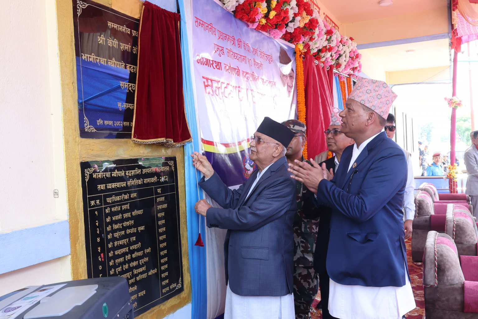 प्रधानमन्त्री ओलीले पुरानो पुस्ताको आदर्श व्यक्तित्व भागीरथाका सन्तानले जग्गा दान दिएर अस्पताल बन्न सकेको उल्लेख गरे।
