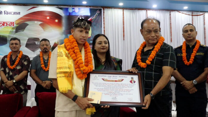 काठमाडौं । नेपाली महिला राष्ट्रिय फुटबल टोलीकी कप्तान सावित्रा भण्डारीलाई हेटौंडामा सम्मान गरिएको छ ।