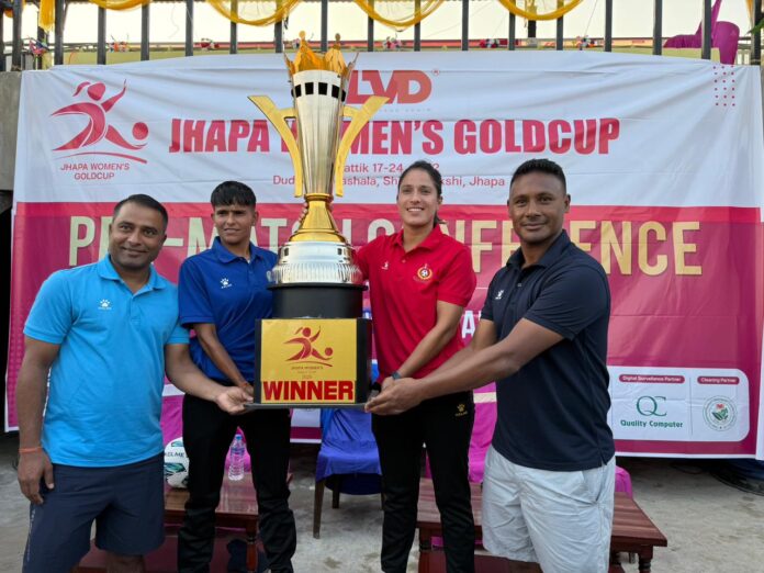 बिर्तामोड, कात्तिक २४ । झापाको शिवसताक्षीस्थित दुधे रंगशालामा आज महिला फुटबलको महाकुम्भ आयोजना हुँदैछ । एलभिडी झापा महिला गोल्डकप फुटबल प्रतियोगिताको फाइनल खेल आज (सोमबार) दिउँसो २ः३० बजेबाट सुरू हुनेछ ।