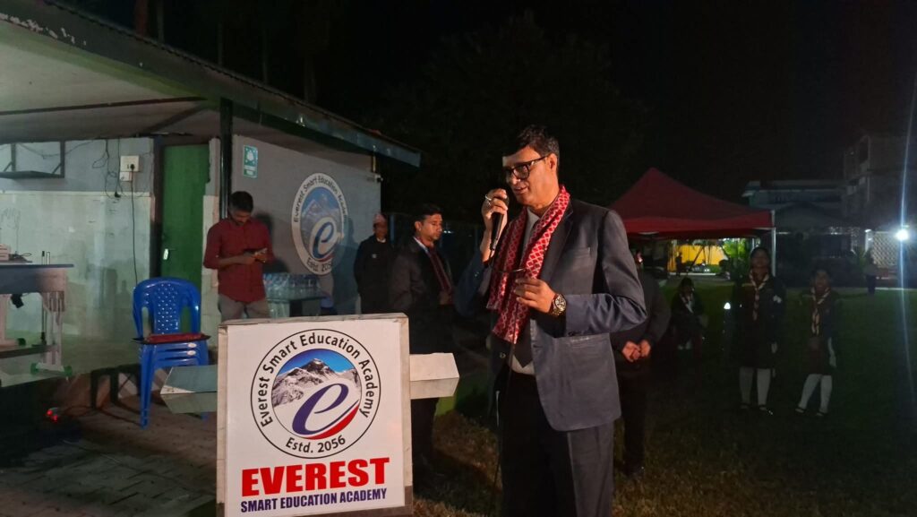 क्याम्प फायरिङ सेरेमोनीमा सहभागि भएका प्रमुख अतिथि विर्तामाेड ६ का वडाध्यक्ष सुर्य कन्दङ्वाले ‘स्काउट’ आफैमा स्वयंसेवी संस्था रहेको चर्चा गर्दै एभरेष्ट विद्यालय भित्रकै विद्यार्थीहरु पनि यो सेवामा लागेकोमा गर्व लागेको बताए ।