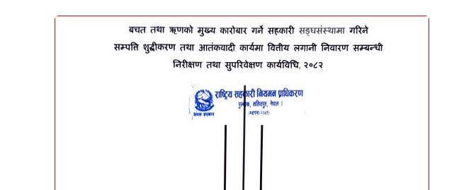 काठमाडौं । वचत तथा ऋणको मुख्य कारोबार गर्ने सहकारीमाथि सरकारले निगरानी बढाएको छ । सरकारले वचत तथा ऋणको मुख्य कारोबार गर्ने सहकारी सङ्घसंस्थामा निगरानी बढाउँदै त्यस्ता सहकारीमा गरिने सम्पती शुद्धीकरण तथा आतंकवादी कार्यमा वित्तीय लगानी निवारण सम्बन्धी निरीक्षण तथा सुपरीवेक्षण गर्न कार्यविधि जारी गरेको छ ।