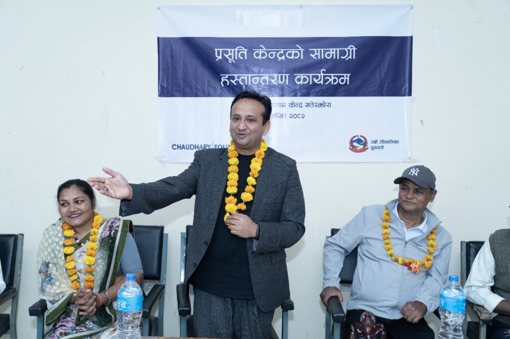 चौधरी फाउन्डेसनले स्वास्थ्य चौकीका सेवा प्रवाहमा सुधार ल्याउन तथा बर्थिङ सेन्टरलाई स्तरोन्नत, आधुनिक र गुणस्तरीय सुविधा–सम्पन्न बनाउन आवश्यक सबै उपकरणहरू प्रदान गरेको प्रबन्ध निर्देशक चौधरीले जानकारी दिनुभयो। फाउन्डेसनले सातै प्रदेशका बर्थिङ सेन्टरहरूलाई स्थानीय आवश्यकताअनुसार सहयोग गर्दै आएको र सुरक्षित मातृत्व तथा स्वस्थ समुदाय निर्माणका लागि कार्यक्रम विस्तार गरिरहेको समेत उहाँले उल्लेख गर्नुभयो।