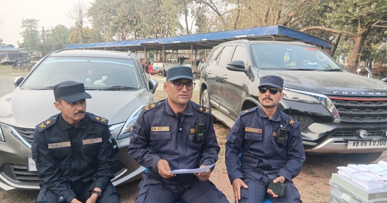झापा । जिल्ला प्रहरी कार्यालय झापाले २०८२/११/१२ गते भद्रपुर न.पा. वडा नं. ८ एयरपोर्ट घोडामारा सडक खण्डमा भारतीय नम्बर प्लेटका दुई सवारीसाधनमा सवार सात जनालाई पक्राउ गरेको छ। उनीहरूले सरकारी छाप र दस्तखत नक्कली बनाएर ठगी गर्ने योजना बनाएको पाइएको छ।