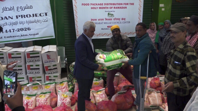 नेपाल भारत मिल्लत परिषद् केन्द्र र युएई एडको सहयोगमा बुधवार काठमाडौको मैतीदेवीमा खाद्यान्न वितरण गरिएको हो । मुस्लिमहरुको एक महिने रमजान महिनाको अवसरमा एक महिनालाई नै पुग्नेगरि खाद्यान्न वितरण गरेको मुस्लिम आयोगका पूर्वअध्यक्ष समिम मियाँ अन्सारीले जानकारी दिनुभयो ।