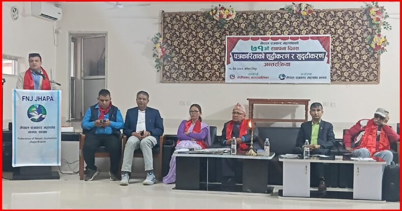 महासंघ झापाका अध्यक्ष एकराज गिरीको अध्यक्षतामा भएको कार्यक्रममा पूर्व केन्द्रीय महासचिव चन्द्र भण्डारी, कोशी प्रदेश उपाध्यक्ष अम्बिका भण्डारीलगायतले पत्रकारिताको शुद्धीकरण र सुदृढीकरणमा जोड दिएका थिए। सोही क्रममा ११ बुँदे ‘झापा संकल्प–पत्र २०८२’ पारित गरिएको छ।