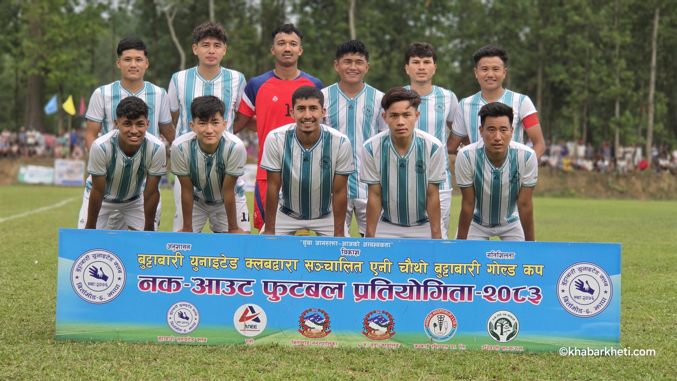 बिर्तामोड । एनी चौथो बुट्टाबारी गोल्ड कप नकआउट फुटबल प्रतियोगिताको उपाधि आयोजक बुट्टाबारी युनाइटेडले जितेको छ।
